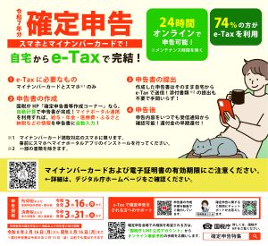 令和7年度分確定申告は自動入力ができる「e-Tax」が便利です。